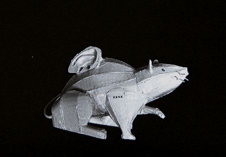 enamel paint, metal and brush |