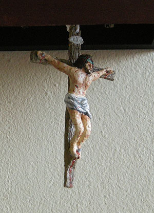 Detail of Christ under illuminated manuscript. 2008. Oil on epoxy resin.