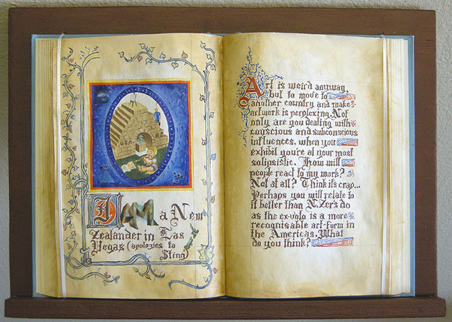 Illuminated Manuscript. 2008. Oil on found book and wood.